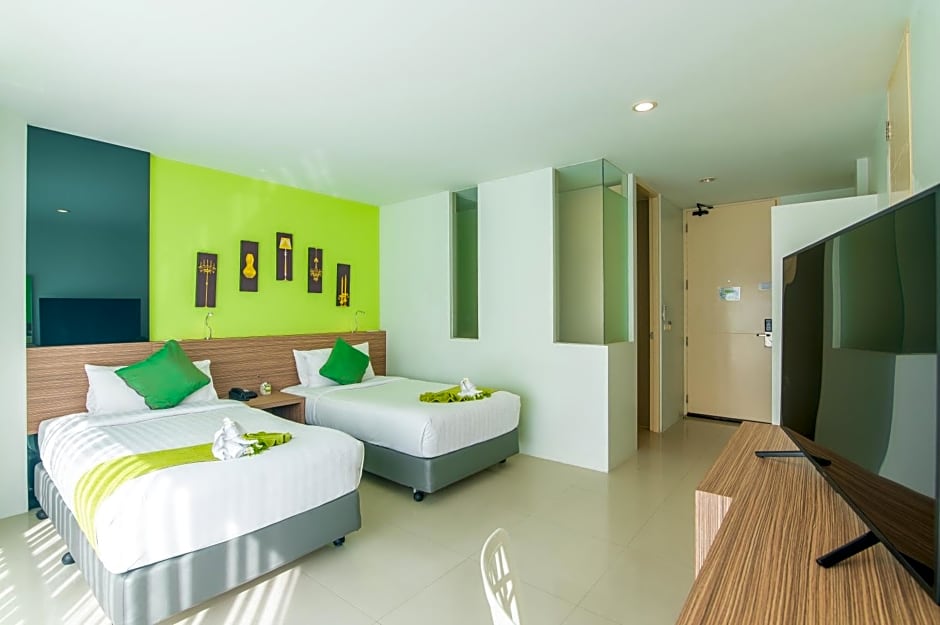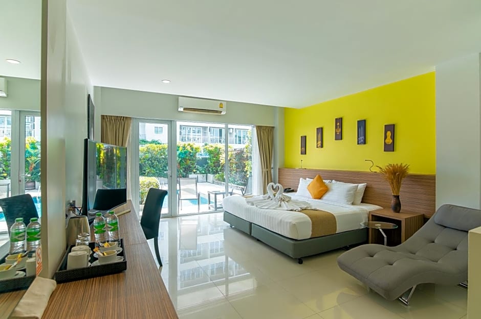Pool Access is 474 square feet and includes either a king-size bed 150-183 width or 2 single beds 80-130 width plus balcony, extra beds on demand, desk, cable tv, and slippers.