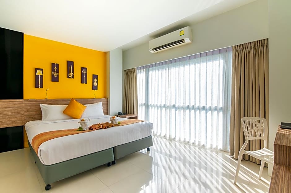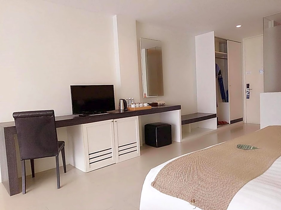 Luxury One Bedroom is 538 square feet and includes a king-size bed 150-183 width plus living room, extra beds on demand, desk, satellite tv , cable tv, and slippers.