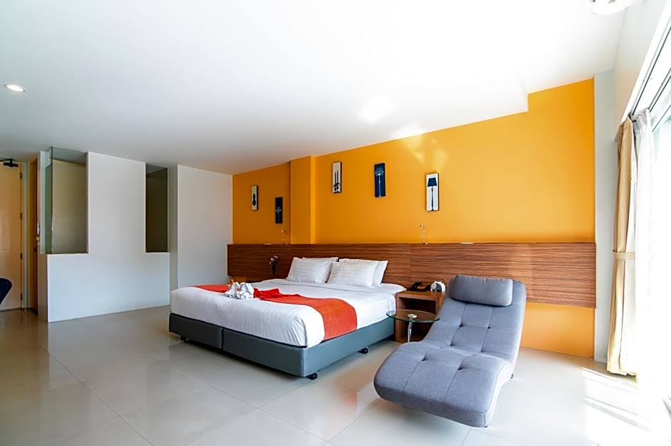 Luxury One Bedroom is 538 square feet and includes a king-size bed 150-183 width plus living room, extra beds on demand, desk, satellite tv , cable tv, and slippers.